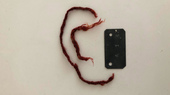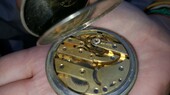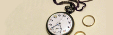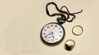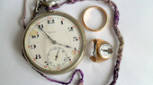 La montre-gousset avec la ficelle que je faisais au crochet quand j'étais petite, et l'alliance avec le nom de ma mère.