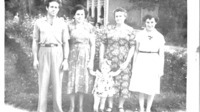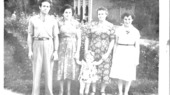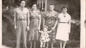 Das Foto zeigt meine Großmutter (rechts) mit ihrer Mutter und sechs Geschwistern zu Weihnachten 1944.Meine Großmutter